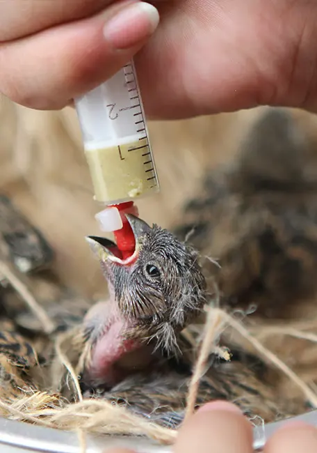 Hand-feeding with a soft tube is the safest and cleanest way to feed hand-feeding formula.